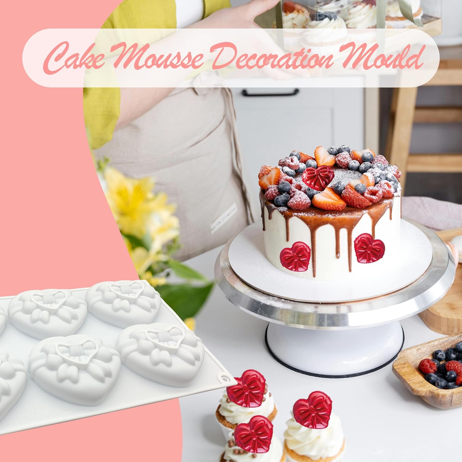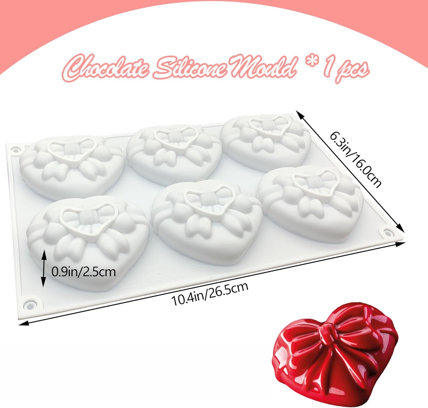 - Exquisite Form: Die 6-Loch-3D-herzförmige Silikonform ist nicht nur feine Verarbeitung, sondern auch weich und langlebig. Sie verfügt über klare Texturen und eine realistische Schleifen-Liebesform, die Ihnen helfen kann, einzigartige Schleifen-Liebesdesserts zu erstellen, wie z. B. Party-Dessert-Kuchen mit Liebesthema